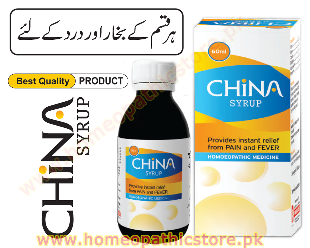 چائنا فیور اینڈ پین شربت بخار کو کم کرنے اور جسمانی درد، سر درد اور فلو سے پیدا ہونے والی تکالیف میں آرام پہنچانے کے لیے تیار کیا گیا ہے۔ یہ جسم کا درجہ حرارت کم کرتا ہے اور درد میں سکون بخشتا ہے تاکہ مریض کو فوری آرام مل سکے۔ بچوں اور بڑوں دونوں کے لیے مفید ہے (ڈاکٹر کے مشورے کے مطابق استعمال کریں)۔