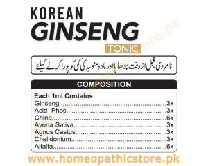 کوریائی جینسنگ شربت ایک قدرتی مردانہ ٹانک ہے جو توانائی بڑھانے، قبل از وقت بڑھاپے سے بچانے اور تولیدی افعال کو بہتر بنانے کے لیے تیار کیا گیا ہے۔ یہ جنسی کمزوری، کمزور طاقت اور منی کی کمی کو دور کرتا ہے اور مردوں کی مجموعی صحت اور توانائی کو بڑھاتا ہے۔ باقاعدہ استعمال سے قوتِ مدافعت مضبوط ہوتی ہے، برداشت بڑھتی ہے اور تولیدی صحت بہتر رہتی ہے۔